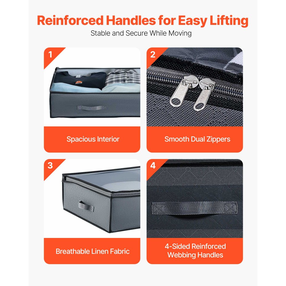 Úložný prostor pod postel s průhledným víkem, 996 x 500 x 180 mm, 90l velké úložné kontejnery na oblečení pod postel, nízkoprofilový organizér na boty, zásuvka pod postel, box na přikrývky a boty do ložnice, 4 kusy | Prodejna nářadí | Originalnitextil.cz