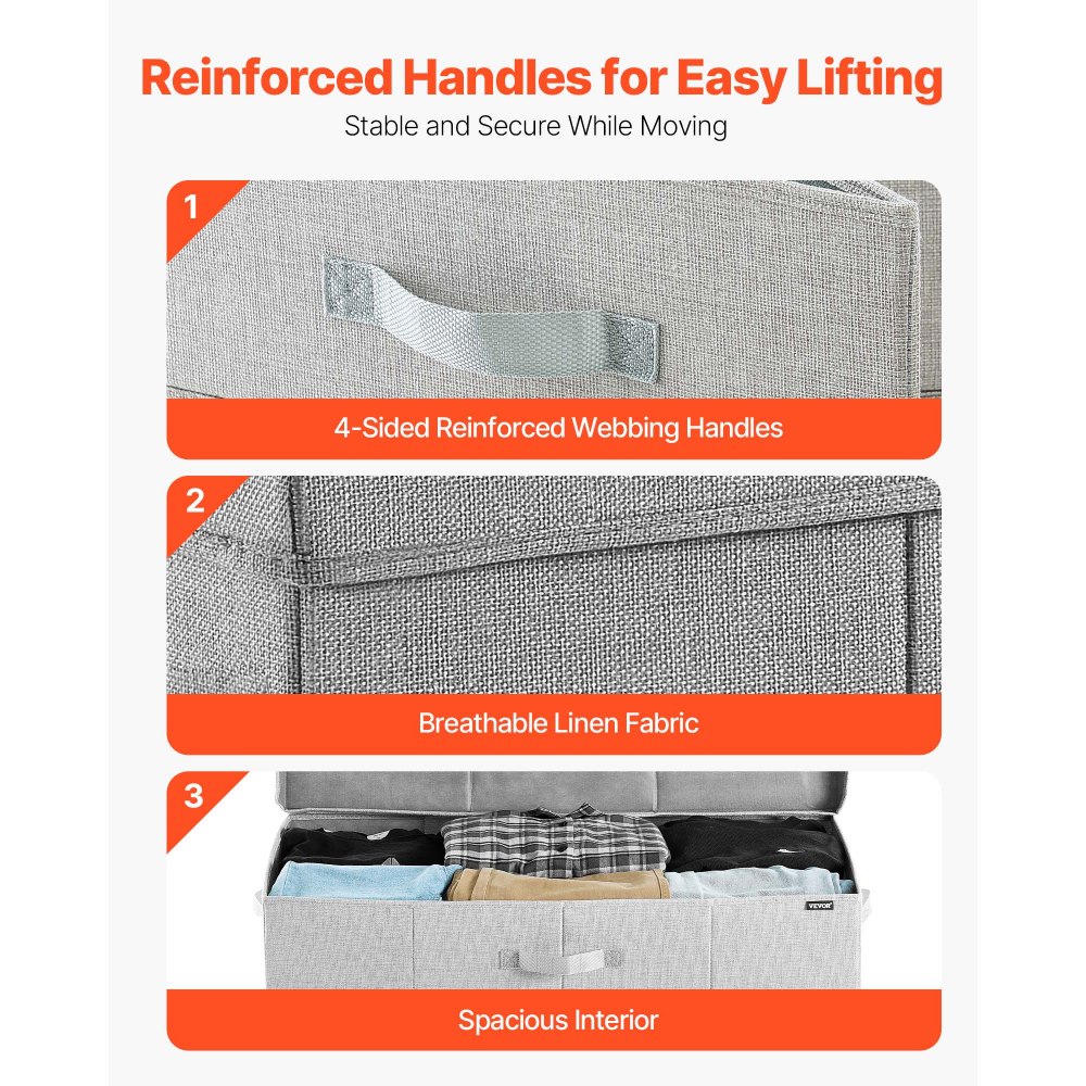 Prémiové materiály: Tento úložný prostor pod postel kombinuje lněnou látku bez zápachu s extra silným materiálem a odolnými zipy pro robustní odolnost a vysokou nosnost, což zajišťuje bezpečné uložení a dlouhodobé používání.