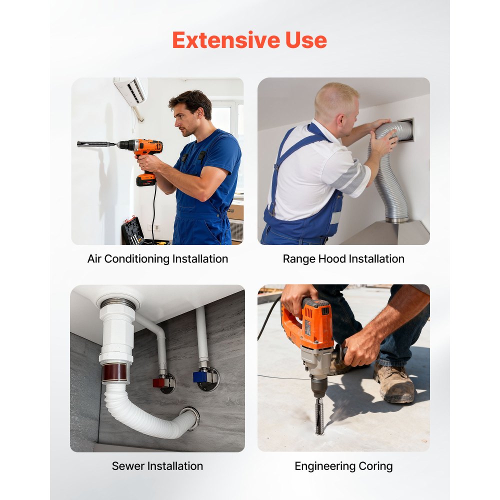 Vysoká kompatibilita: Tato sada obsahuje jádrový vrták o průměru 1-1/2 palce, tři adaptéry a jeden pilotní vrták, díky čemuž je kompatibilní s většinou standardních vrtaček a příklepových vrtaček. Kombinuje všestrannost a pohodlí pro různé úkoly.