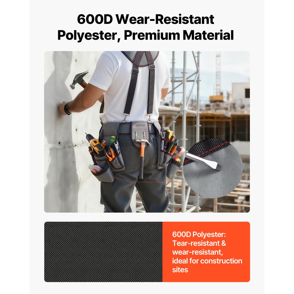 Opasek na nářadí, 22 kapes, pouzdro na nářadí s podvazky pro muže, odolný nastavitelný opasek s podvazky pro elektrikáře, tesaře, stavebnictví, organizér na pracovní zástěry, nastavitelný pas 81-173 cm