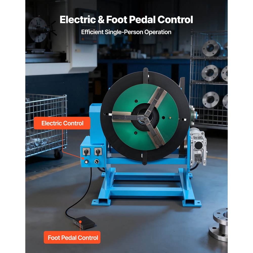 Rotační svařovací polohovač VEVOR, nosnost 500 kg, úhel náklonu -45° až 90°, otočný stůl, regulace otáček 0,2–2 ot./min, elektrický a nožní, pro řezání, broušení a montáž | Ruční nářadí | Originalnitextil.cz