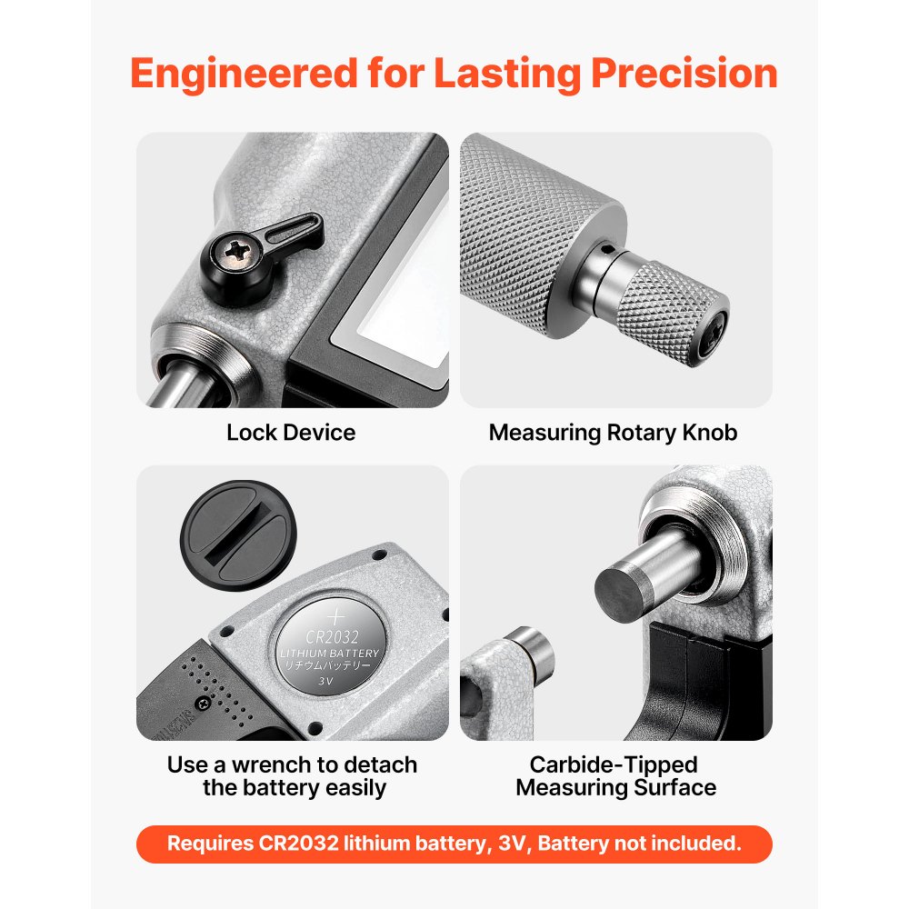 Sada mikrometrů VEVOR, digitální vnější mikrometr, měřicí rozsah 0–25,4 mm, rozlišení 0,001 mm, ultra přesná přesnost, LCD displej, přepínač palce/mm, karbidový hrot, s ochranným pouzdrem | Ruční nářadí | Originalnitextil.cz