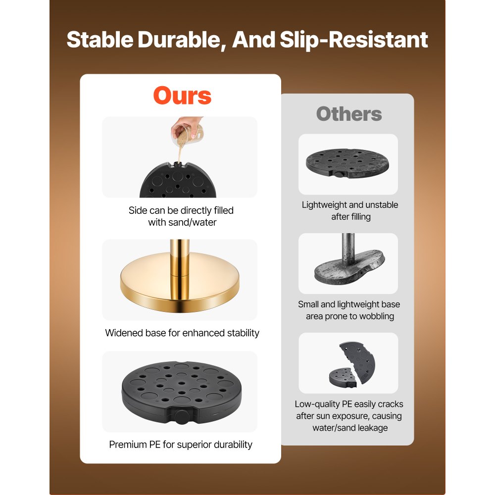 Plnitelná a podlahově šetrná základna: Naplňte každou základnu vodou nebo pískem (až 2,6 kg, 3,5 kg) a spolehněte se na gumový kroužek, který odolá převrácení a zároveň chrání podlahu.