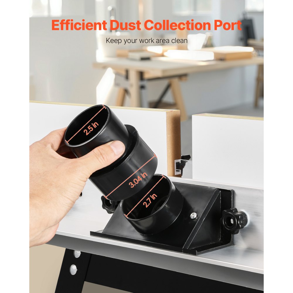 Udržujte si pracovní prostor čistý: Tento stolní frézovací stůl je vybaven průhledným krytem a účinně blokuje poletující nečistoty. Otvor pro sběr prachu, pokud je připojen k hadici, efektivně zachycuje nečistoty a prach během provozu bez potíží.