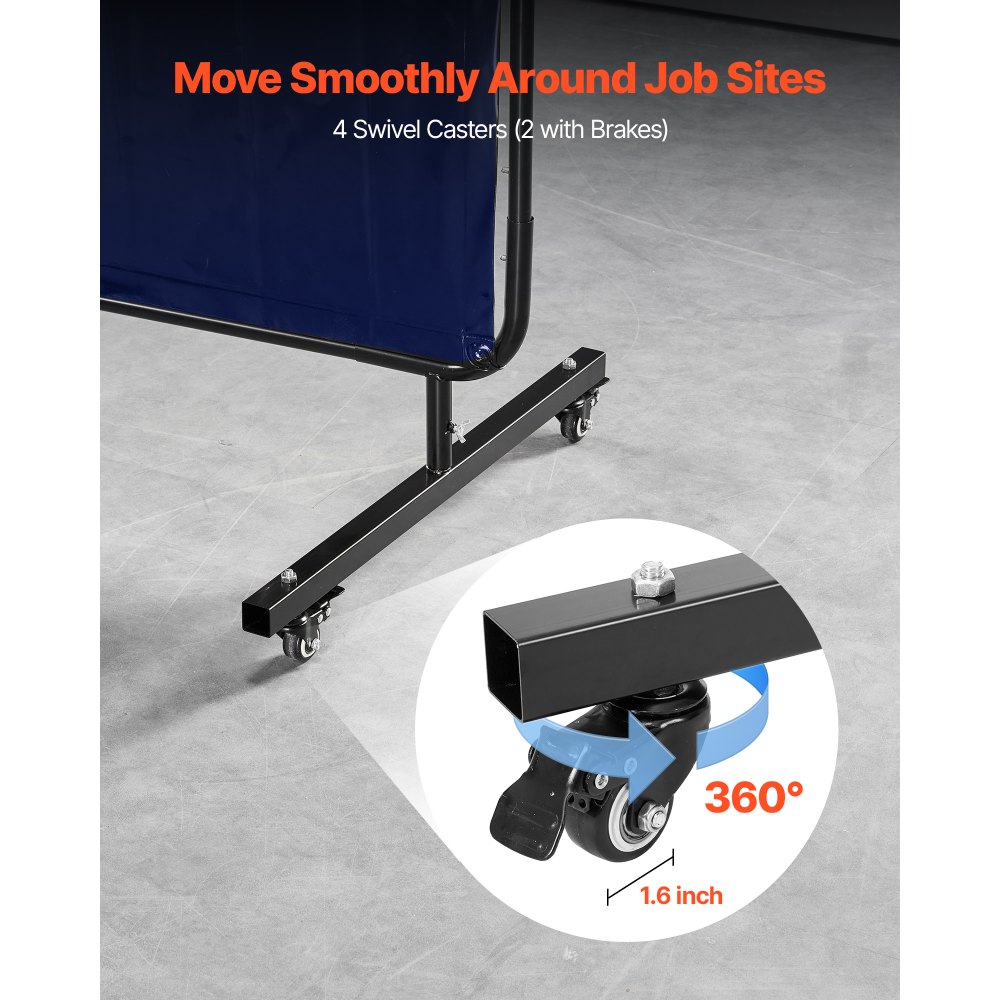Svářečská zástěna VEVOR s rámem, svářečská zástěna 1,74 x 1,74 m, ochranná zástěna z nehořlavého vinylu s uzamykatelnými otočnými kolečky a 6stupňovou UV ochranou pro dílenské/průmyslové použití, modrá