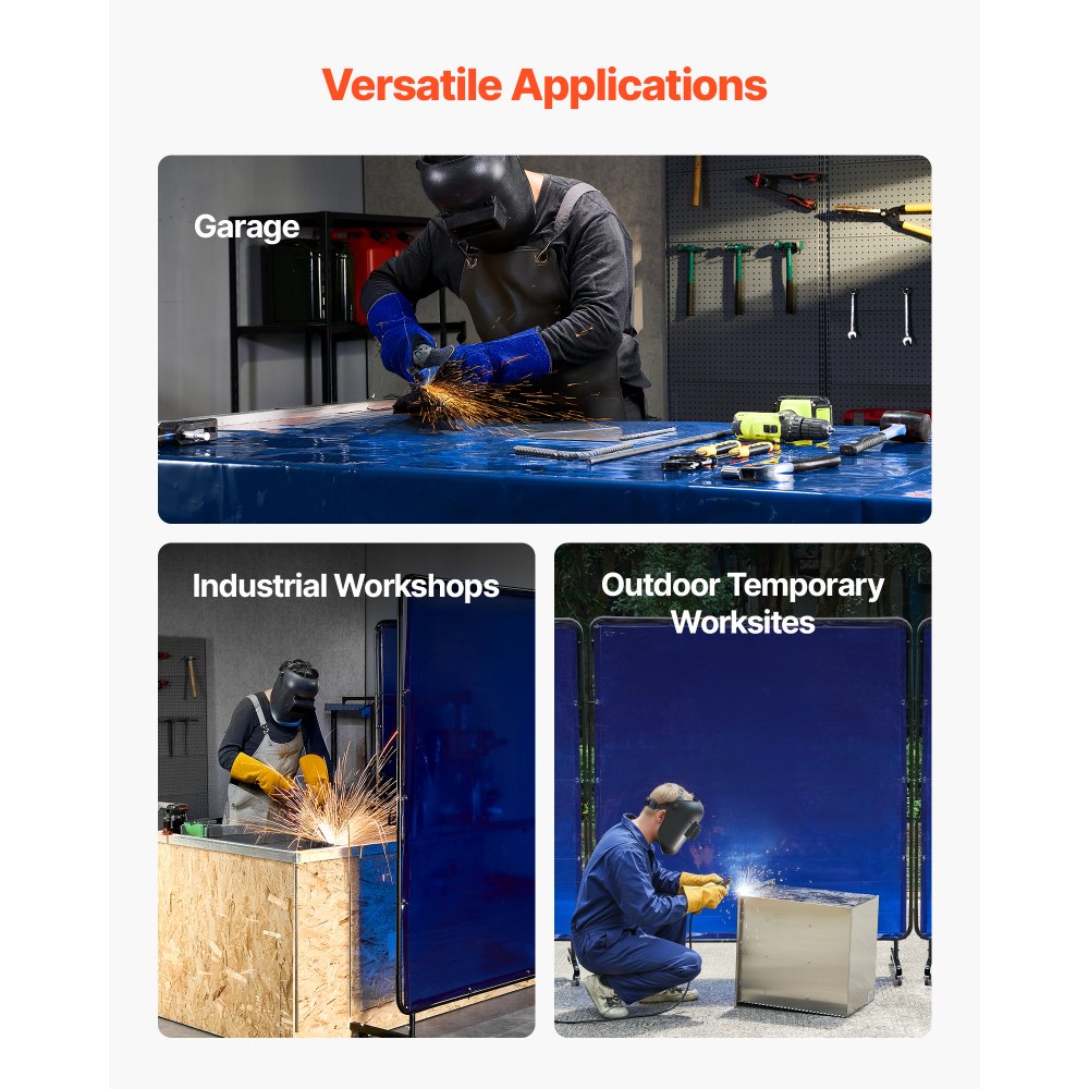 Prostorný ochranný prostor: Svářečská zástěna VEVOR o rozměrech 6 x 6 stop s rámem poskytuje komplexní ochranu vašeho pracovního prostoru a svařovacích projektů. Udržujte svůj prostor chráněný a minimalizujte dopad jisker a rozstřiku, čímž vytváříte bezpečnější a efektivnější pracovní prostředí.