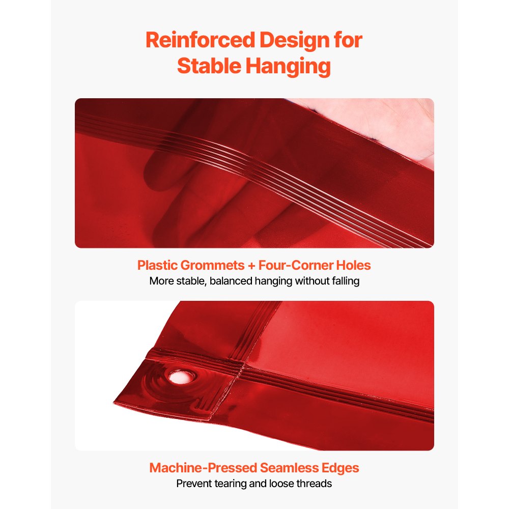 Svářečské závěsy VEVOR 2PCS, svářečská zástěna 1,74 x 2,34 m, nehořlavá vinylová bezpečnostní ochranná zástěna s 6stupňovou UV ochranou a závěsnými otvory, přenosná pro dílenské/průmyslové použití, červená | Ruční nářadí | Originalnitextil.cz