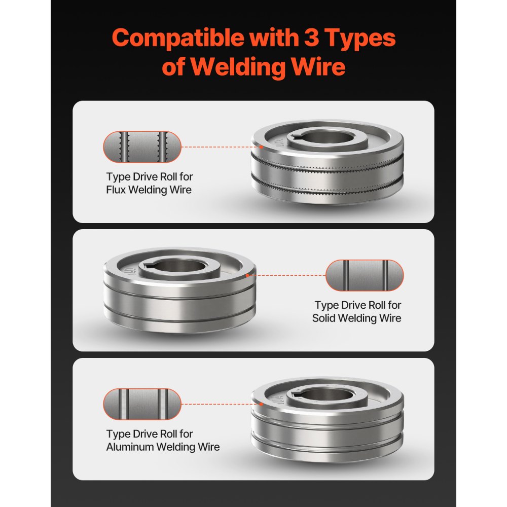 Plynulý svařovací výkon: Svařovací pistole VEVOR je navržena pro dráty o průměru 0,023 palce, 0,030 palce a 0,035 palce a zajišťuje stabilní oblouky, minimální rozstřik a vysoce přesné svary. Je kompatibilní s plněnými dráty, plnými dráty a hliníkovými dráty, takže je ideální pro různé materiály v automobilovém, námořním a stavebním průmyslu.