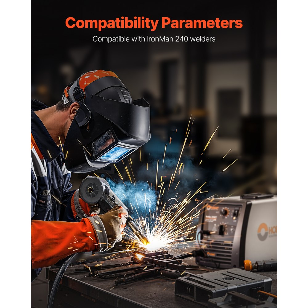 Kompatibilita: Kompatibilní se svářečkou Hobart IronMan 240 MIG a podporuje cívky svařovacího drátu o hmotnosti 1 lb, což nabízí všestrannost pro různé svářečské úkoly.