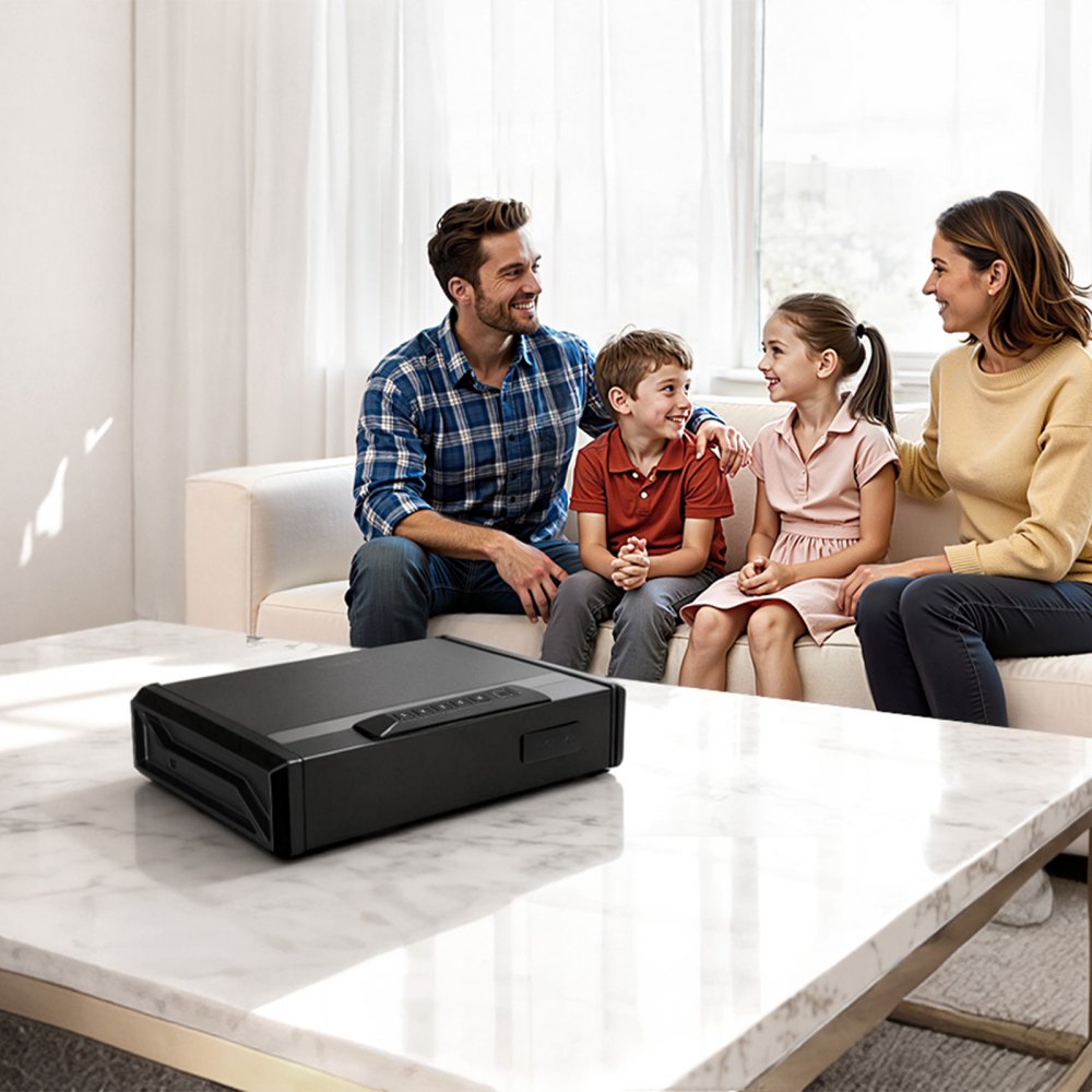 3 způsoby přístupu: Tento trezor na zbraně nabízí 3 možnosti odemknutí – umožňuje uložit až 30 otisků prstů nebo 4místný kód pro blokování neoprávněného přístupu. Součástí balení jsou 2 náhradní klíče a nouzový USB port pro rychlý přístup i v případě vybití baterií.