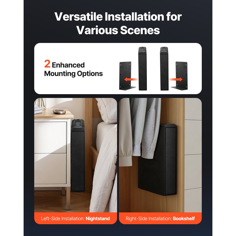 Snadná instalace: Tento trezor na pistole je dodáván s předvrtanou montážní deskou a 3 možnostmi instalace – vlevo, vpravo nebo nahoře. Jeho kompaktní design se hodí na stoly, knihovny nebo noční stolky pro rychlý a pohodlný přístup doma, v kanceláři nebo ve firmě.