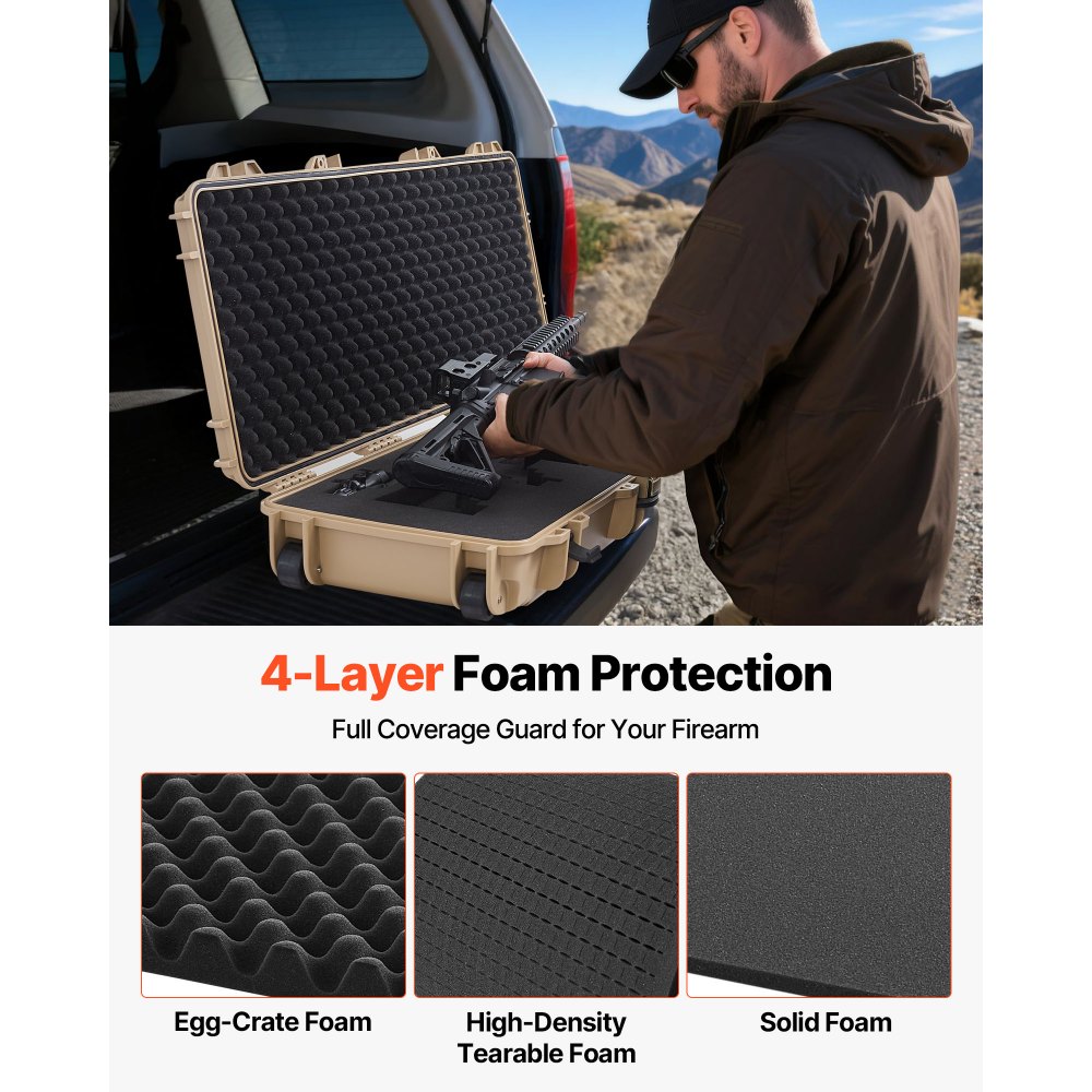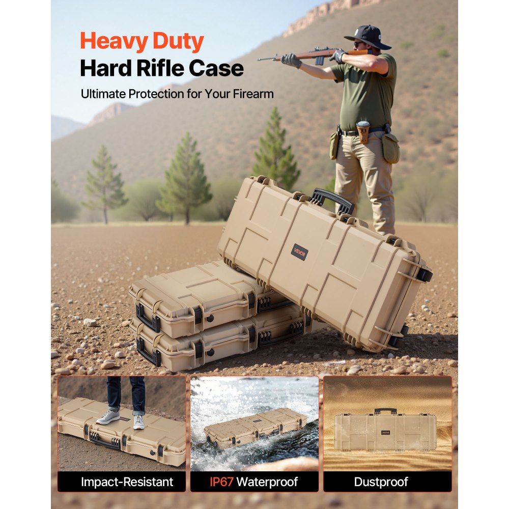 Tvrdé pouzdro na pušku VEVOR, uzamykatelné pouzdro na pušku s předřezanými pěnami, pohyblivé úložiště zbraně 1066 mm s kolečky, vodotěsné a prachotěsné úložiště pistole IP67 pro pušku, brokovnici, airsoftovou zbraň, khaki | Ruční nářadí | Originalnitextil.cz