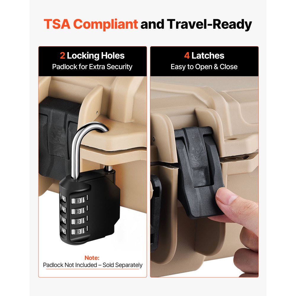 V souladu s TSA: Toto pouzdro na pušku splňuje normy TSA a je vhodné pro cestování letadlem, vlakem a jinými dopravními prostředky. Je vybaveno několika západkami, do vestavěných otvorů pro uzamčení můžete pro větší bezpečnost přidat visací zámky (Poznámka: visací zámky nejsou součástí balení).