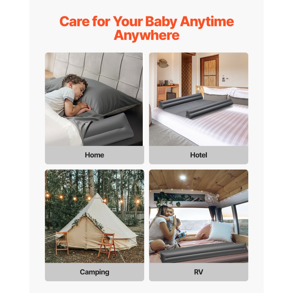 Zůstaňte v bezpečí, ať jste kdekoli: Ideální pro použití doma nebo na cestách – ať už v hotelu, kempování nebo na cestách – přenosná ochranná lišta VEVOR s klopou zajišťuje vašemu dítěti bezpečí a pohodlí, ať je kdekoli.