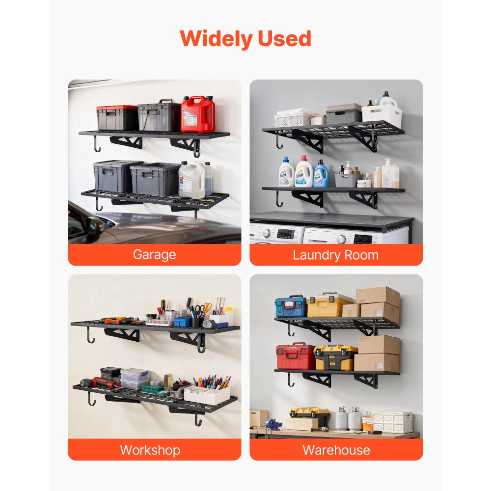 Dvoupatrový vysoce odolný nástěnný regál do garáže, 610 x 1219 mm, ocelový nástěnný regál s háčky, 610 x 1219 mm na polici, plovoucí kovový regál do garáže, celková nosnost 227 kg | Skladovací a manipulační zařízení | Originalnitextil.cz