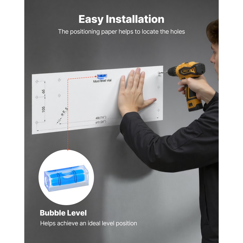 Snadná a bezstresová instalace: Tato sada plovoucích polic do garáže obsahuje šablonu pro umístění a vodováhu pro vedení vrtacích bodů. Jasné kroky usnadňují, aby byla instalace jednoduchá, hladká a příjemná i pro začátečníky v oblasti kutilství.