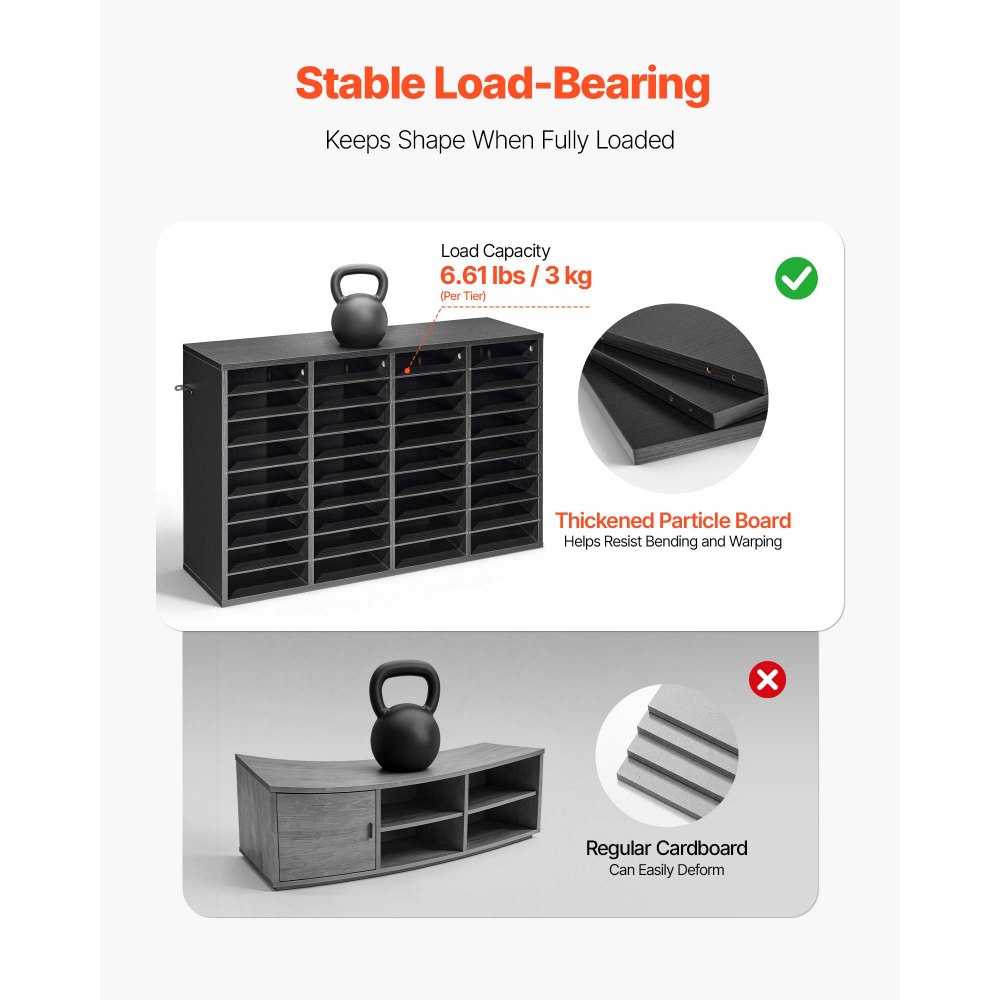 Organizér na literaturu VEVOR, 36 přihrádek, kancelářská poštovní schránka s odnímatelnými policemi, dřevěný třídič poštovních schránek s dřevotřískou, pracovní deska, kancelářský úložný organizér na spisy, dokumenty, papíry, černá