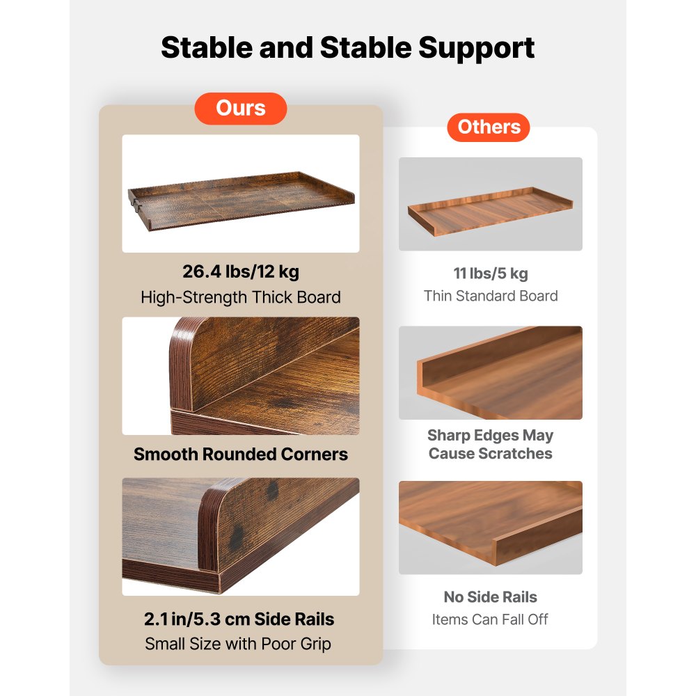 Pracovní deska na pračku a sušičku VEVOR, dřevěná vrchní deska na pračku a sušičku 137 x 69,9 cm s okrajem a háčky, voděodolná vrchní deska na pračku, do skříně, spíže, pro organizaci a úložný prostor, hnědá | Skladovací a manipulační zařízení | Originalnitextil.cz