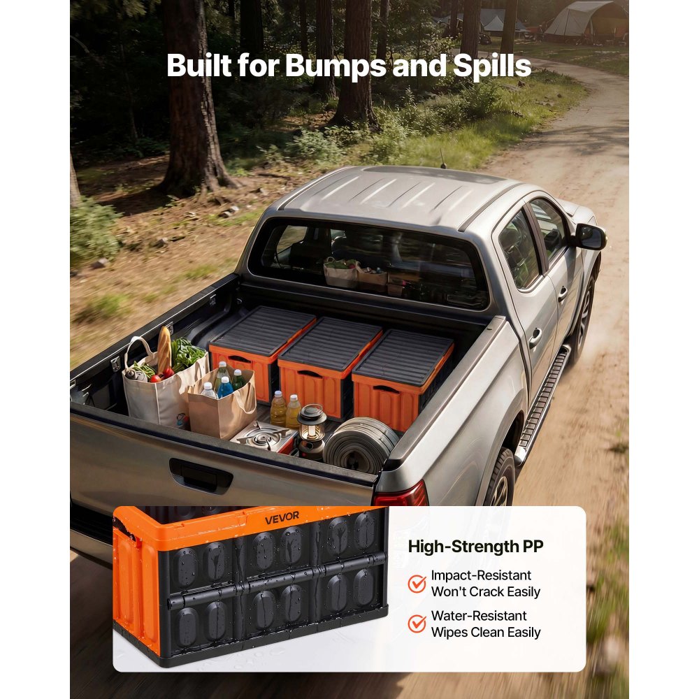 Extra velká kapacita 45 l: Snadno pojme nákupy, kempingové vybavení a předměty denní potřeby. Tyto skládací úložné boxy s víkem poskytují prostornou organizaci všeho v jednom, takže jedna bedna zvládne více úložných potřeb.