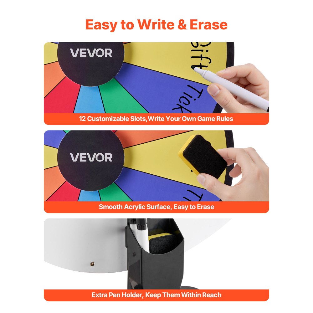 Přizpůsobitelné a upravitelné: 12 slotů pro personalizaci her. Hladká, přepisovatelná hrací deska s živými barvami dodá vašemu výhernímu kolu výherní výhry vyniknout na jakékoli akci.
