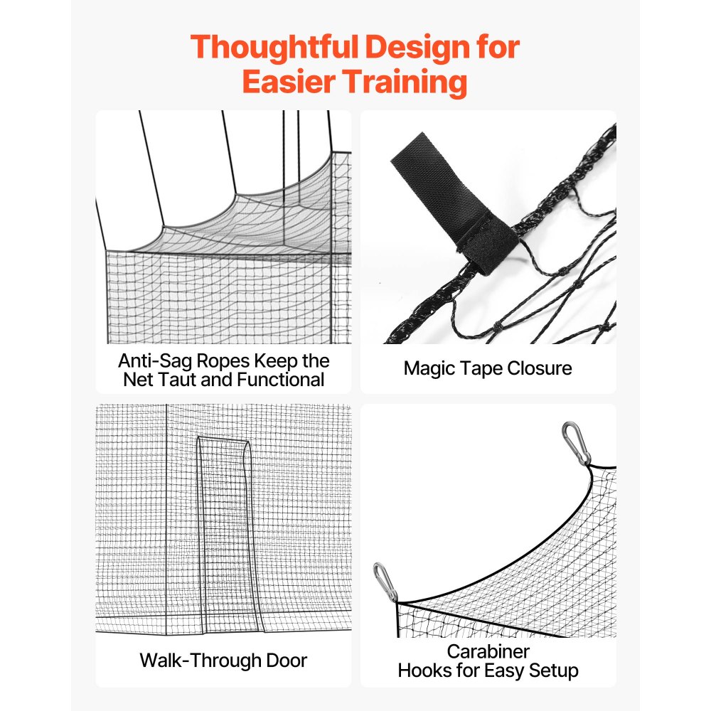 Snadný přístup: Tato softballová klec VEVOR (pouze síť) je navržena pro pohodlí a má dvířka se zapínáním na suchý zip pro snadný vstup a výstup. Je vhodná pro sportovce všech věkových kategorií a nabízí flexibilní přístup, čímž zlepšuje celkový tréninkový zážitek.