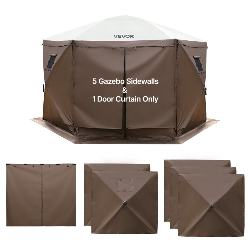 Boční stěny stříšky VEVOR, 1,73 x 1,48 m, stěny stříšky stanu s vodotěsnou a sluneční ochranou, 1 dveře na zip a 2 okna, design pro venkovní stany pro akce, prodejní stánky (pouze 6 bočních stěn, hnědá)