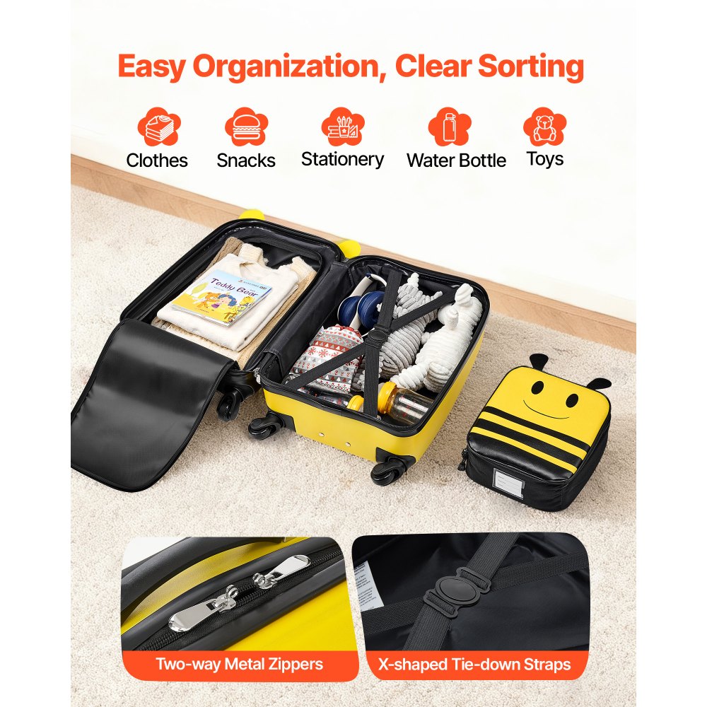 Dětská sada zavazadel VEVOR, 5dílná, kufr s kolečky o rozměru 45,7 cm s pevnými stranami, batohem a polštářem ve tvaru U, sada příručních zavazadel Bee Kids, vánoční dárek k narozeninám pro dívky a chlapce, schváleno leteckou společností
