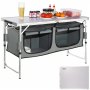 Skvělé uspořádání prostoru: Náš kempingový kuchyňský stůl je navržen tak, abyste si mohli kuchyň vzít ven! Na desce stolu, v úložných přihrádkách na zip, na bočním stolku a na úložné polici si můžete přehledně uspořádat jídlo, sporáky, grily a nádobí. Na háčky si můžete zavěsit špachtli, naběračku, kleště atd.