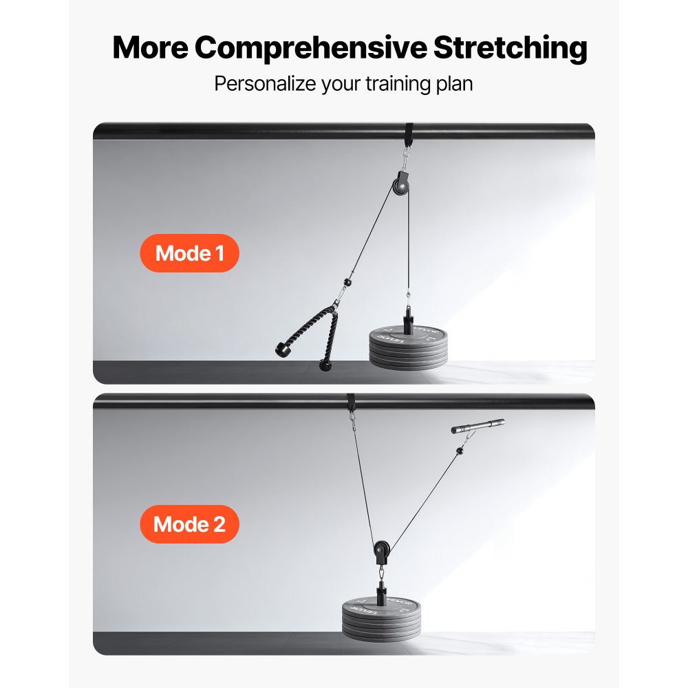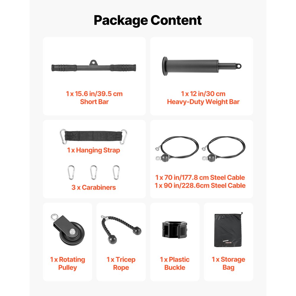 Kladkový systém VEVOR, 1dílný systém kladek na lata a zvedání, úchyty na kladky do posilovacího stojanu se dvěma ocelovými lany, krátká tyč, rukojeti s dvojitým úchopem, lanový stroj na bicepsy, ramena a záda, nosnost až 127 kg