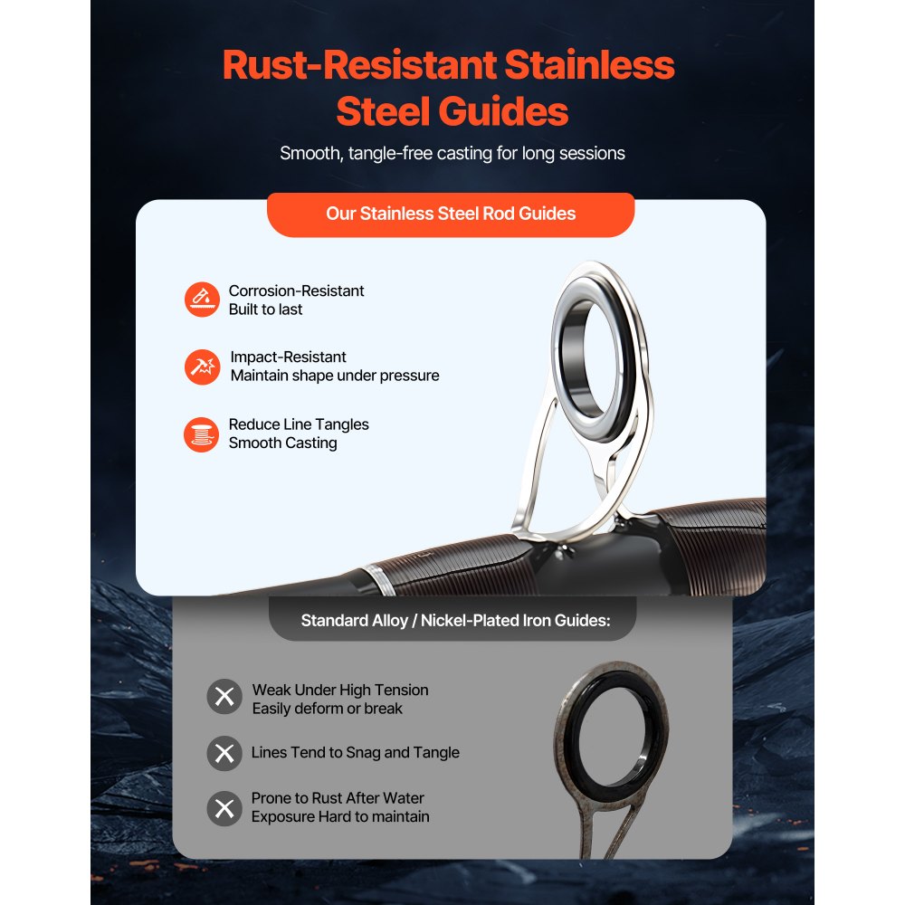 Nerezové vodítko vlasce: Naše sada pro muškaření obsahuje nerezová vodítka vlasce, která zabraňují korozi a nerezaví, což zaručuje dlouhodobé používání. Jejich nárazuvzdorná konstrukce a hladký povrch zabraňují zamotávání vlasce a poskytují bezproblémové nahazování pro příjemnější rybolov.