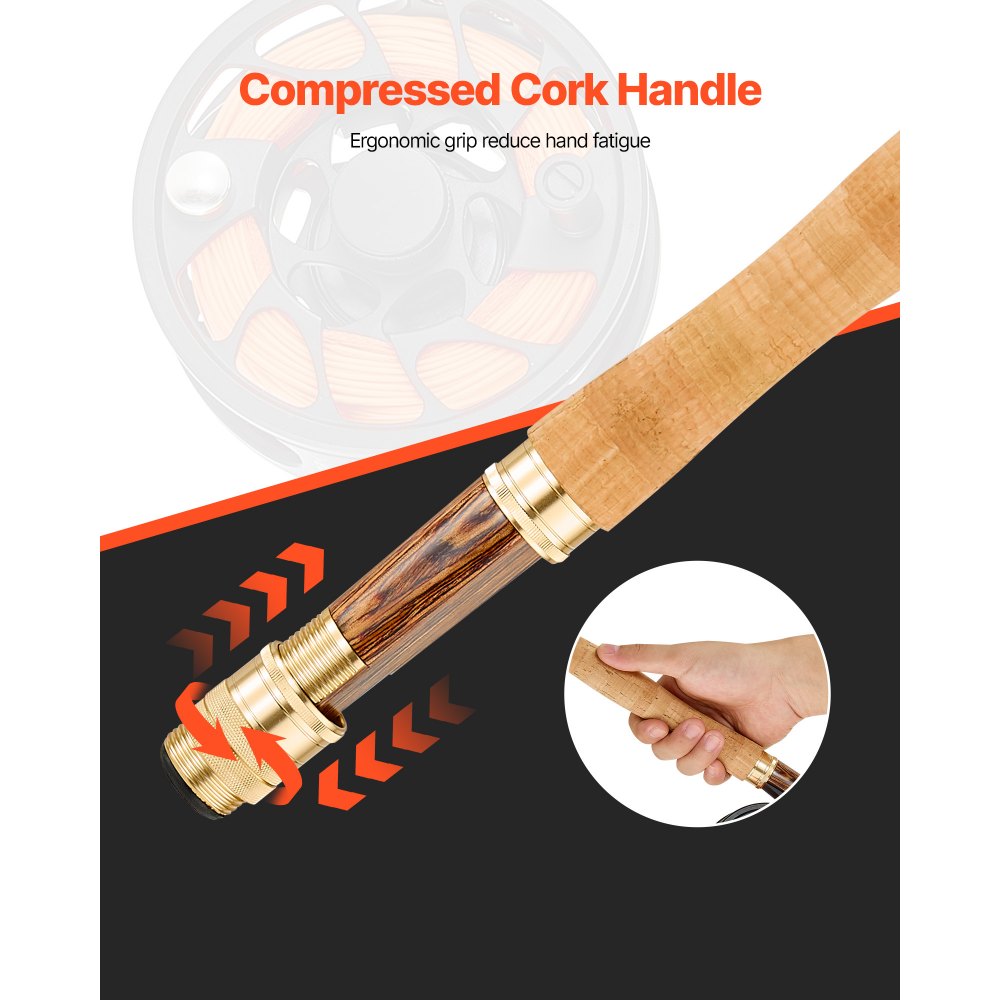 Ergonomická pohodlná rukojeť: Díky ergonomicky tvarované korkové rukojeti poskytuje toto muškařské vybavení VEVOR výjimečné pohodlí a protiskluzový úchop. Jeho tvar ideálně padne do ruky, snižuje únavu při delším používání a zajišťuje stabilní a pohodlný úchop po celou dobu vašeho rybolovu.