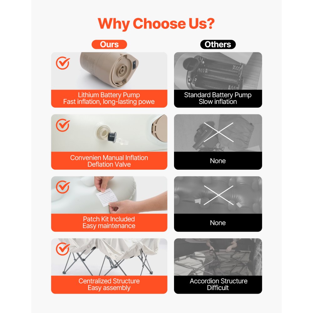 Nafukovací matrace VEVOR Twin s rámem, nafukovací matrace pro 1 osobu s pumpou a přepravním pouzdrem, přenosná skládací nafukovací matrace s nosností 136 kg, rychle se nafukující nafukovací matrace pro domácnost, hosty a kempování