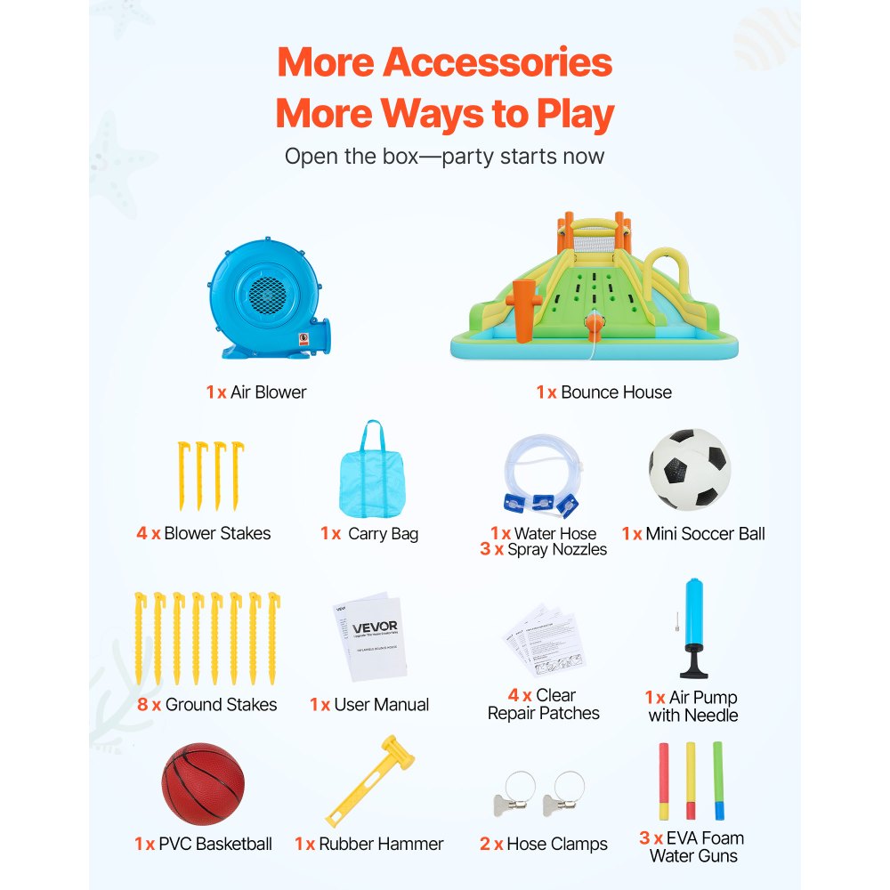 Nafukovací skákací hrací deska VEVOR, 3,3 x 3,4 x 2,4 m, vodní skluzavka, skákací hrad s lezeckou stěnou, dvojité vysoké skluzavky, brouzdaliště a minifotbal, pro 3 až 4 děti ve věku 3 až 8 let | Sport a rekreace | Originalnitextil.cz