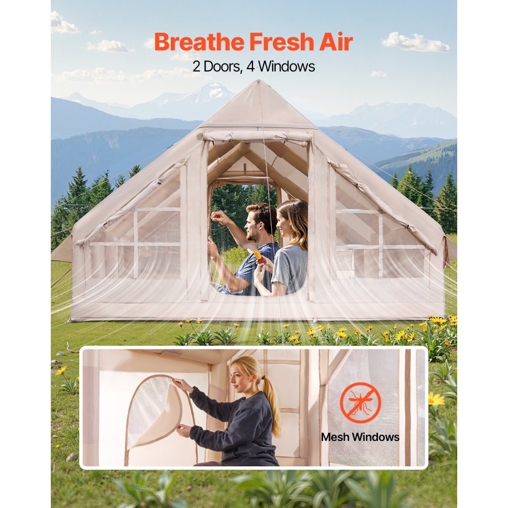 Nafukovací stany VEVOR pro kempování, snadno sestavitelný nafukovací stan pro 5-8 osob s ruční pumpou, 300D Oxford Glamping Stan s vařičem, 2 dveře a 4 síťovaná okna, úložný vak součástí balení pro snadné přenášení | Sport a rekreace | Originalnitextil.cz