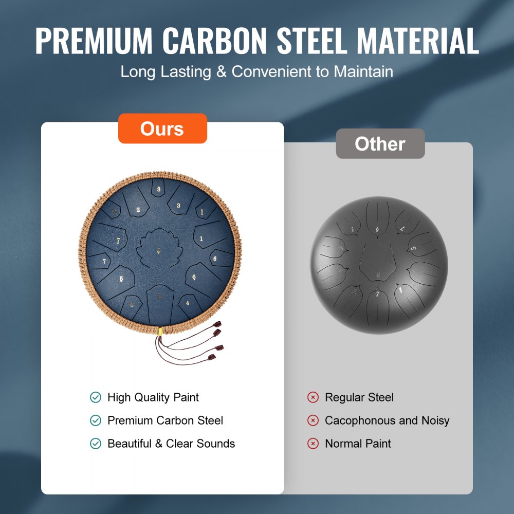 Ručně vyrobený ocelový buben s jazýčkem: Tento ocelový buben s 15 tóny a designem D-kláves vám umožní hrát složité skladby a uklidňující harmonie. Vylepšená technologie ladění činí 14palcový ocelový buben vhodný jak pro profesionální hraní, tak pro začátečníky.