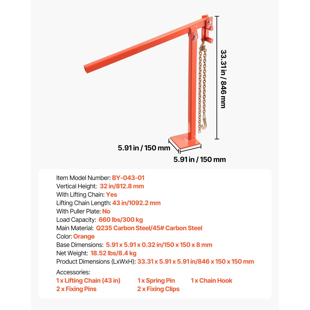 78 cm stahovák na T-sloupky, odolný stahovák na plotové sloupky s 109,2 cm zvedacím řetězem, ocel odolná proti korozi, nástroj pro úsporu práce při odstraňování T-sloupků pro kulaté plotové sloupky, sloupky cedulí a pařezy stromů