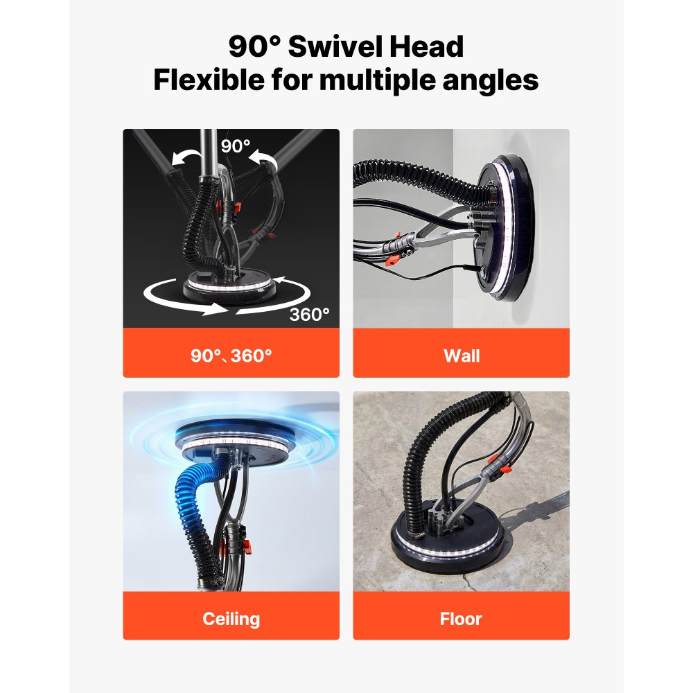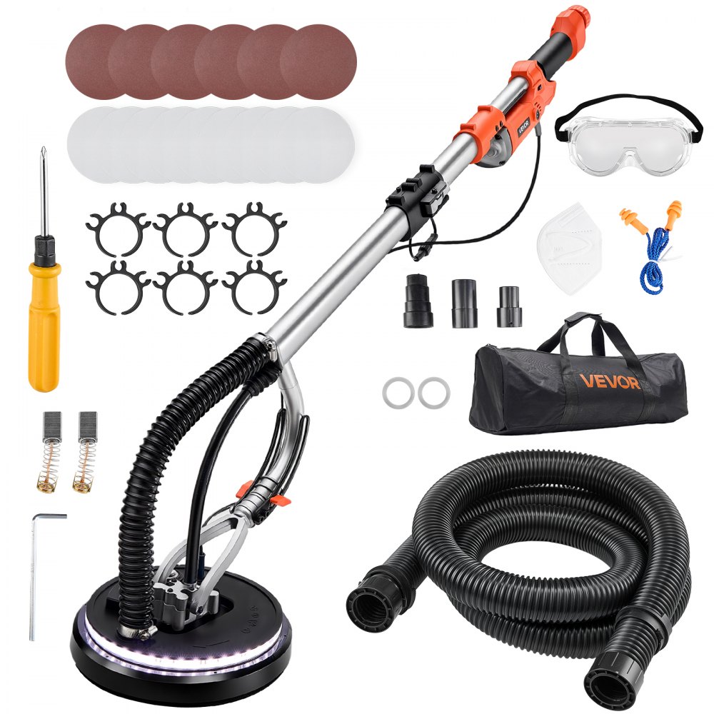 Bruska na sádrokarton VEVOR, elektrická bruska na sádrokarton 1010 W, nástroj na odstraňování stropních popcornů se 7 nastavitelnými otáčkami 1000–2200 ot./min, dvoupatrové LED světlo, skládací a výsuvná rukojeť, 15 brusných kotoučů, hadice na prach | Stavebnictví a konstrukce | Originalnitextil.cz