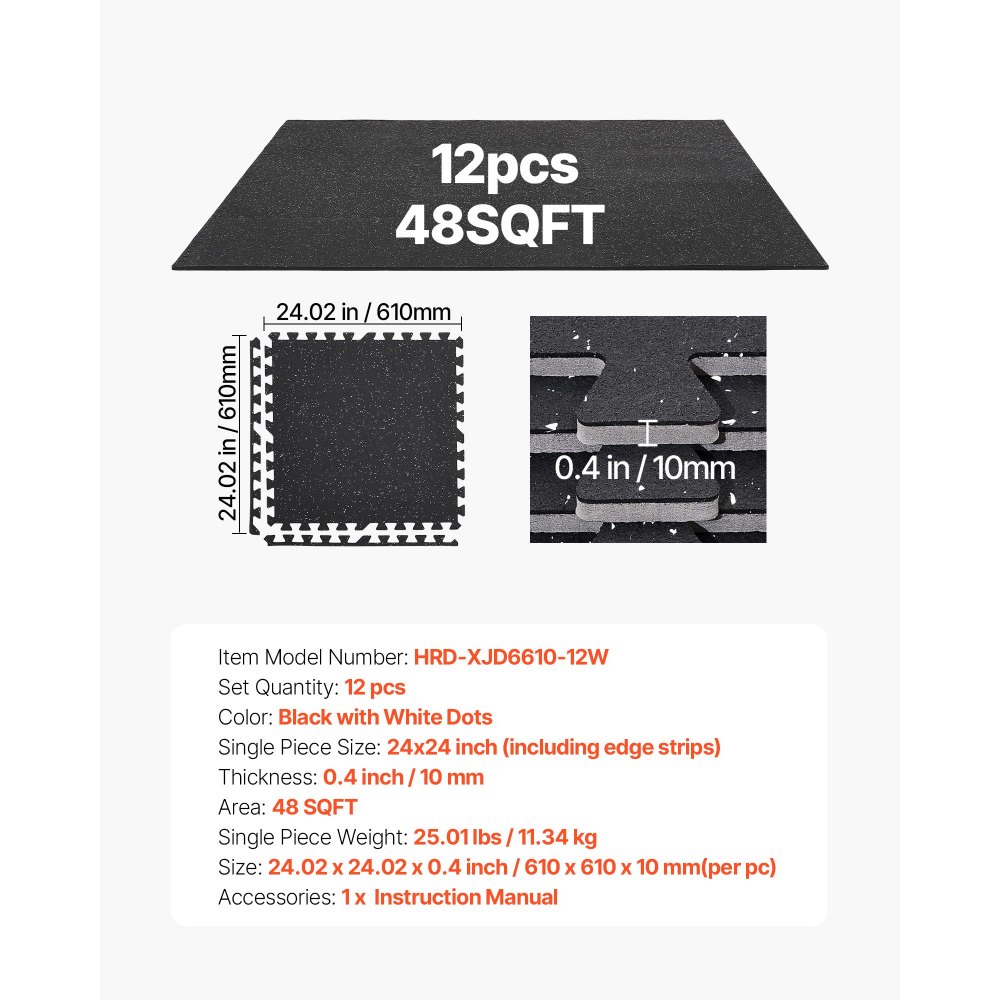 Cvičební podložka VEVOR Puzzle, 12 ks podložek na fitness vybavení, 610 x 610 x 10 mm, sada podložek z pěny EVA s vysokou hustotou, propojené gumové měkké dlaždice, ochranná podlahová výplň s bílými tečkami pro domácí posilovnu a kancelář | Stavebnictví a konstrukce | Originalnitextil.cz