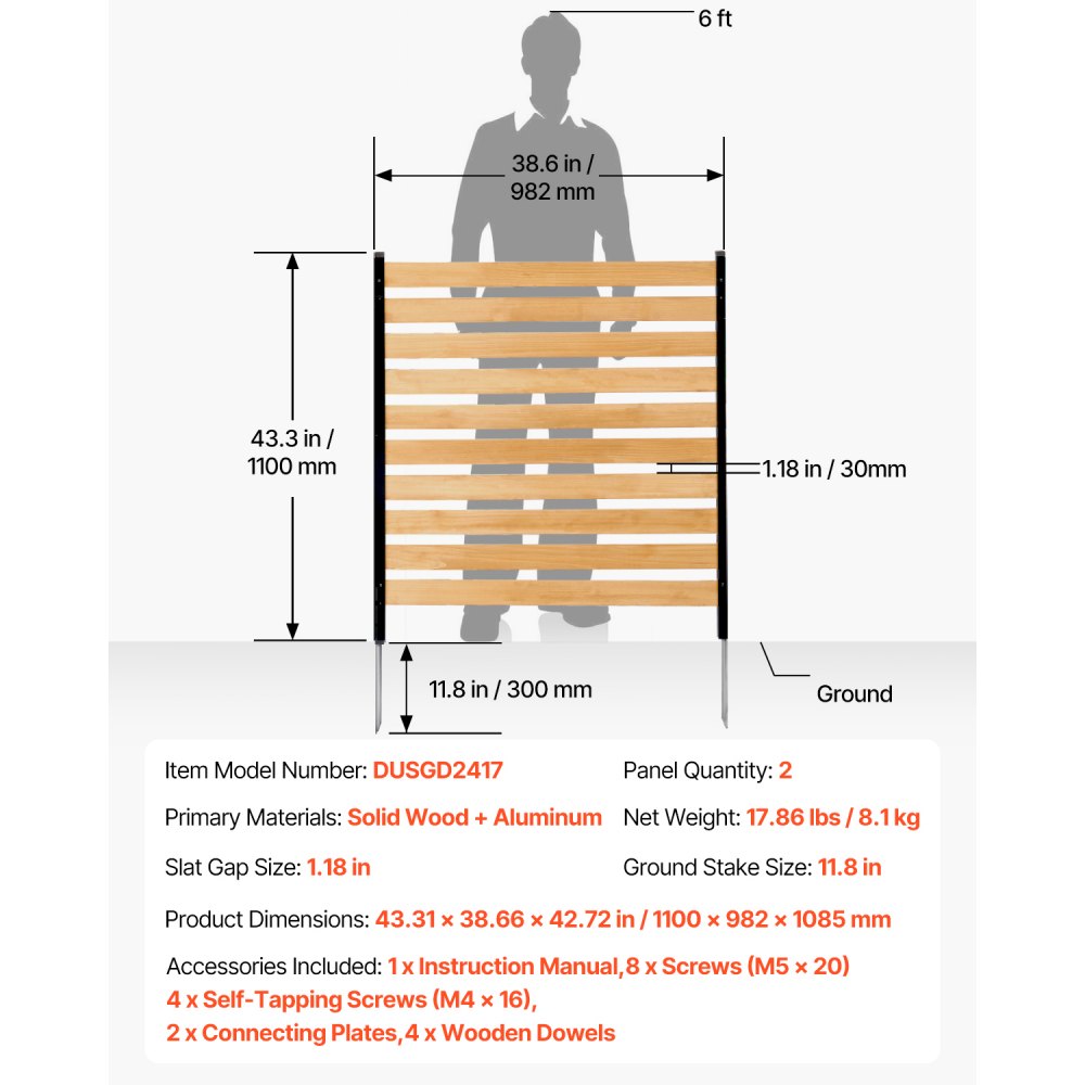 Dřevěný plot VEVOR pro ochranu soukromí, šířka 96 cm x délka 107 cm, 2dílná lamelová zástěna na klimatizaci, kryt bazénového vybavení s kovovými kolíky, snadná instalace svépomocí, venkovní kryt na odpadkový koš pro zahradní dekoraci | Stavebnictví a konstrukce | Originalnitextil.cz
