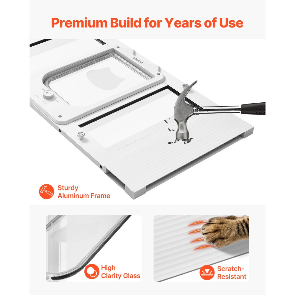 Dvířka pro kočky VEVOR do okna, nastavitelná na šířku okna 686–813 mm, 4 režimy bezpečného zámku, hliníkový rám a vysoce průhledné sklo, magnetické zavírání, odolná proti povětrnostním vlivům a rychloupínací dvířka pro kočky, bílá | Stavebnictví a konstrukce | Originalnitextil.cz