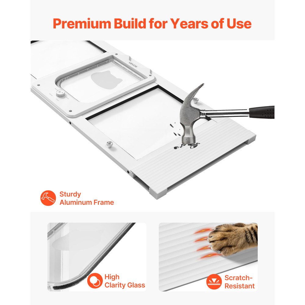 Dvířka pro kočky VEVOR do okna, nastavitelná na šířku okna 889–1016 mm, 4 režimy bezpečného zámku, hliníkový rám, vysoce průhledné sklo, magnetické zavírání, odolná proti povětrnostním vlivům a rychloupínací dvířka pro kočky, bílá | Stavebnictví a konstrukce | Originalnitextil.cz