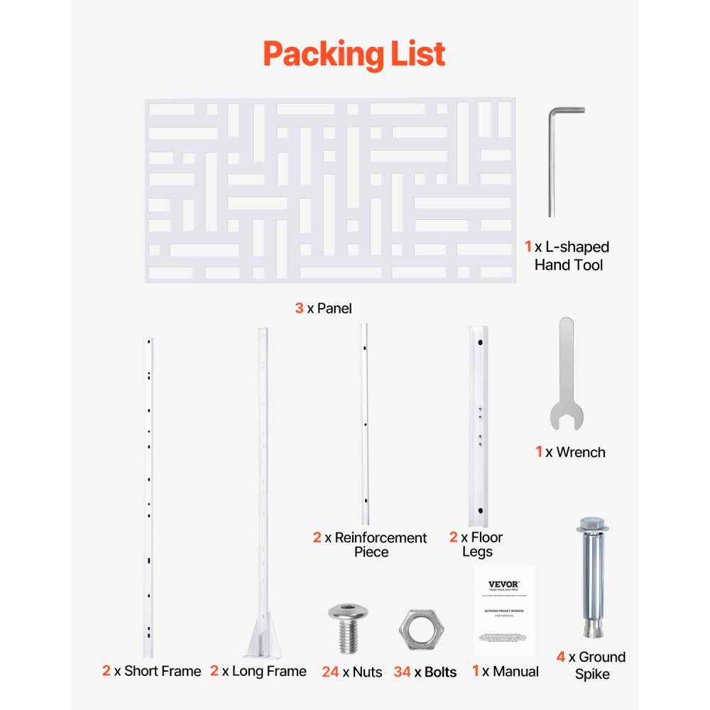 Kovová zástěna na ochranu soukromí VEVOR, šířka 122 cm x výška 183 cm, venkovní zástěna na ochranu soukromí, 3dílná, volně stojící venkovní dělicí stěna se stojanem, dekorativní zahradní ocelový plot na ochranu soukromí pro balkon, terasu, vnitřní pokoj, vířivku, bílý | Stavebnictví a konstrukce | Originalnitextil.cz