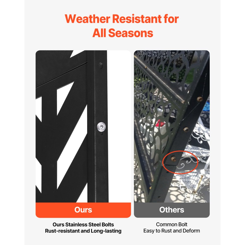Kovová zástěna na soukromí VEVOR, šířka 122 cm x výška 183 cm, venkovní zástěny na soukromí, 5dílná, volně stojící venkovní dělicí stěna se stojanem, dekorativní zahradní ocelový plot na ochranu soukromí pro balkon, terasu, vnitřní prostor, černá | Stavebnictví a konstrukce | Originalnitextil.cz