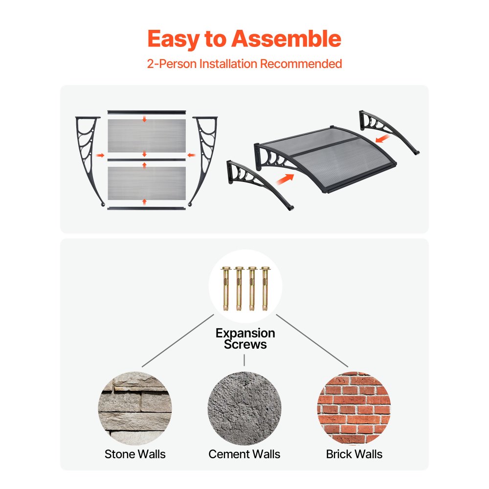 Rychlá instalace svépomocí: Tato venkovní stříška na dveře se dodává s kompletní sadou příslušenství, srozumitelným návodem k instalaci a dvěma typy montážních šroubů pro cihlové, betonové nebo dřevěné stěny. Snadná instalace jednou osobou. Změřte si prostor pro ideální umístění.