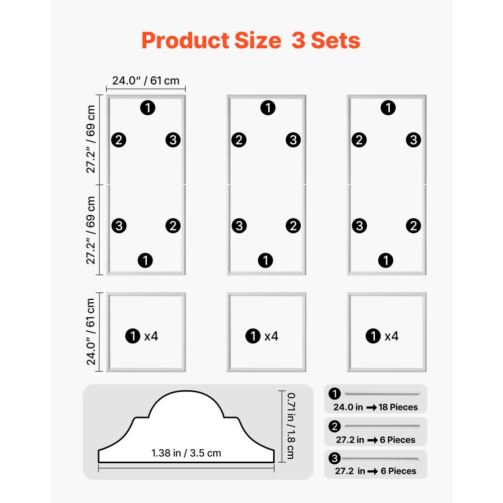 Nástěnné lišty VEVOR, sada 3 obkladových panelů, lehký natíratelný polystyren, snadná instalace, vodotěsné akcentové širokoprofilové lišty pro interiér obývacího pokoje, ložnice, bílé (61x137 + 61x61 cm) | Stavebnictví a konstrukce | Originalnitextil.cz