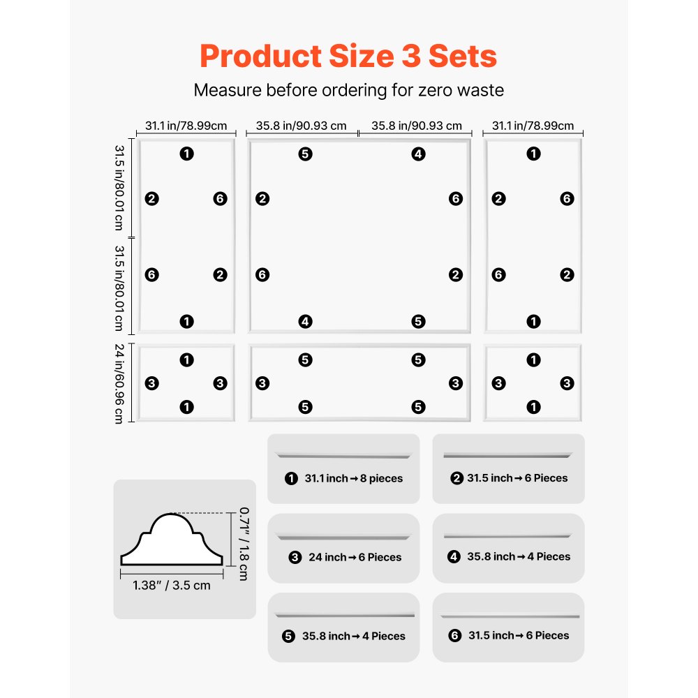 Nástěnné lišty VEVOR, sada 3 obkladových panelů, lehký natíratelný polystyren, snadno instalovatelná akcentová nástěnná lišta pro interiérovou dekoraci obývacího pokoje, ložnice, domu, bílá (79x160 + 79x61 cm)