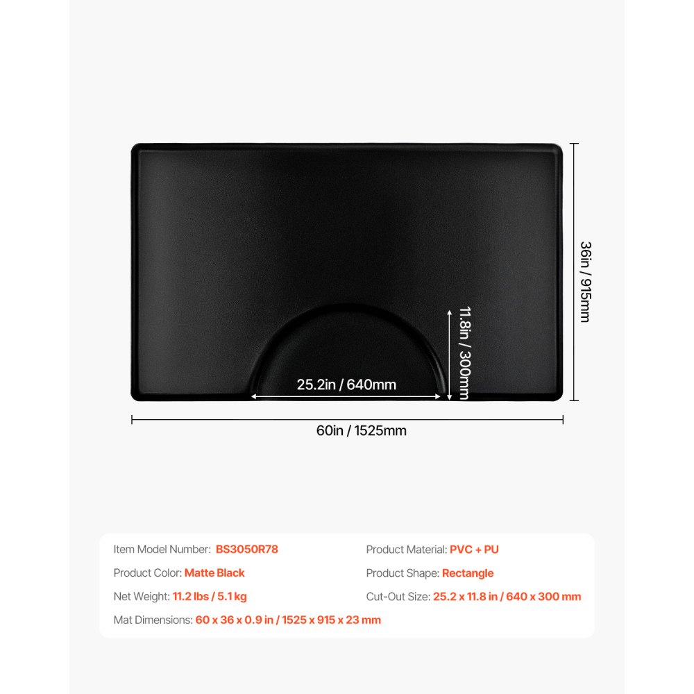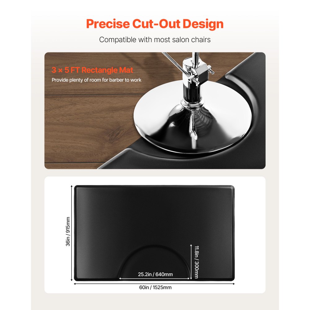 Podložka do kadeřnictví VEVOR, obdélníková podložka na kadeřnické židle 1525 x 915 mm, proti únavě, 23mm zesílená PVC + PU rohožka do kadeřnictví s kulatým výřezem, zkosené hrany s ochranou proti zakopnutí a protiskluzová spodní strana
