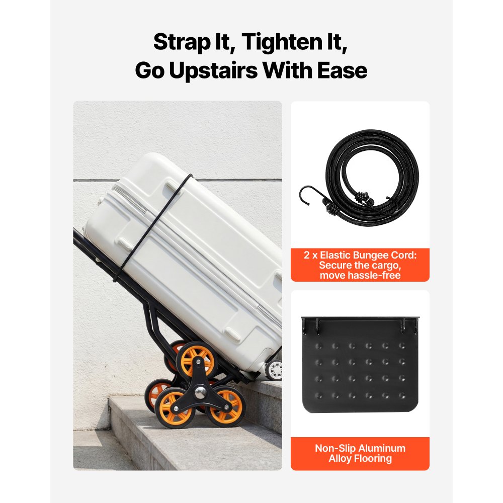 Schodolezecký vozík VEVOR, nosnost 150 kg, skládací vozík pro vysoké zatížení s teleskopickou rukojetí, 6 kol a 2 gumovými lany, vozík na schody pro domácnost, potraviny, sklad