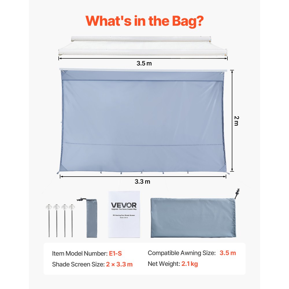 Sluneční clona VEVOR pro obytné vozy, 2 x 3,3 m, markýza pro obytné vozy (vhodná pro markýzy o délce 3,5 m), s UV50+ zipem a PU potahem, dvojitě prošívaná polyesterová síťovina, opalovací krém pro obytné vozy, cestování a kempování venku | Stavebnictví a konstrukce | Originalnitextil.cz