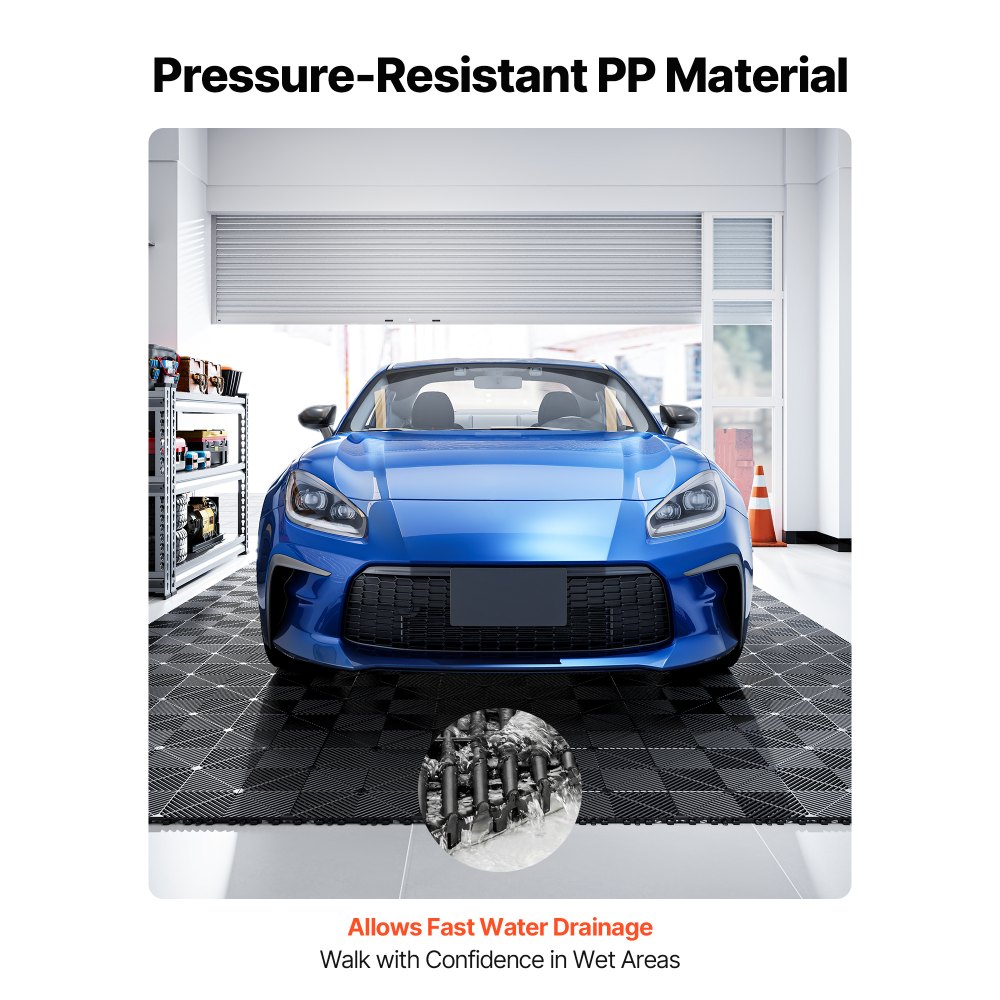 Snadná montáž, individuální rozvržení: Tato dlaždice do garáže má zámkový design pro rychlou montáž. K dispozici je volitelné lemování okrajů (prodává se samostatně), které vám umožní přizpůsobit rozvržení různým prostorům a potřebám instalace.